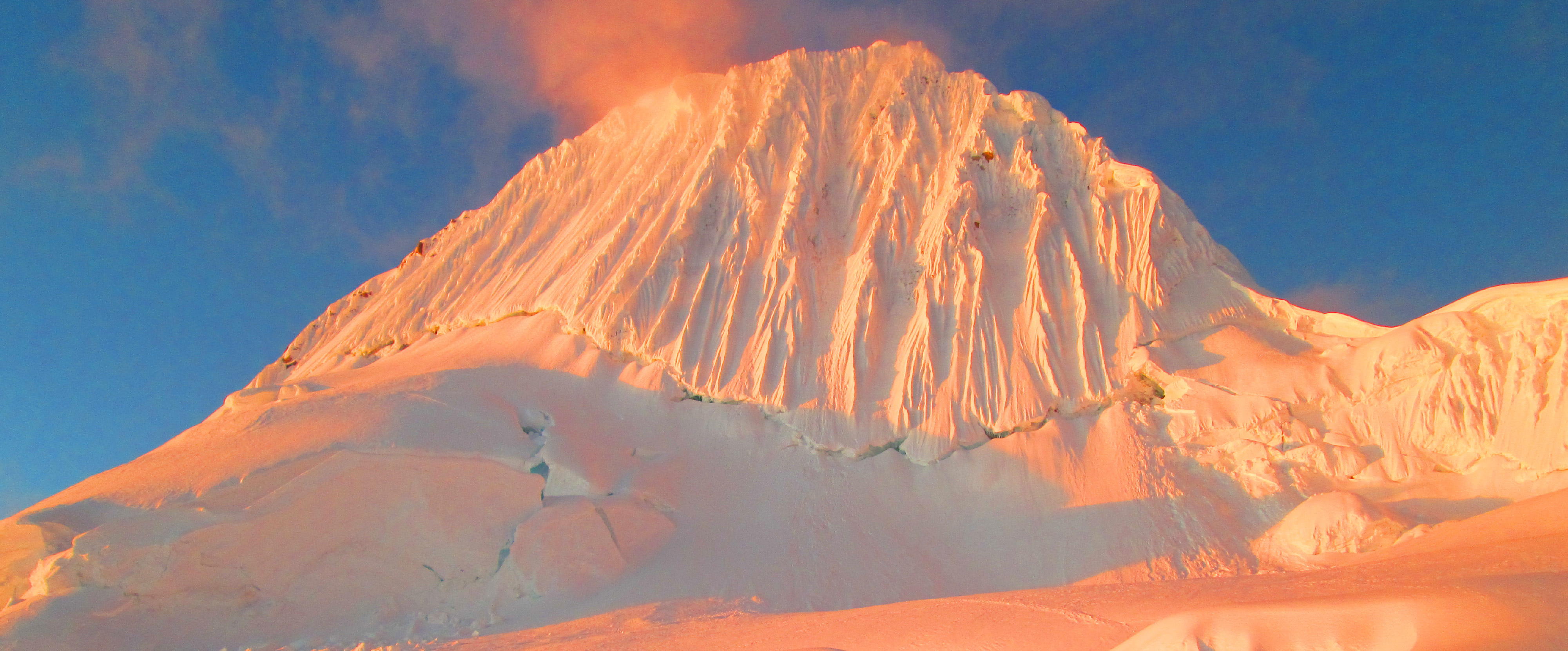 This beautiful climbing trip is designed for mountaineers that have previous experience in mountaineering expeditions and want to abroad their climbing skills with ice climbing and long expeditions. This package focus on Alpamayo 5947 m – 19,511 ft, Tocllaraju 6034 m – 19,797 ft and Chopicalqui 6354 m – 20,846 ft
